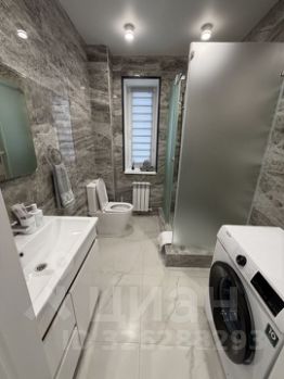 Ванная комната: душевая кабина, стиральная машина, гель для душа, шампунь, кондиционер, зубные щетки и зубная паста.