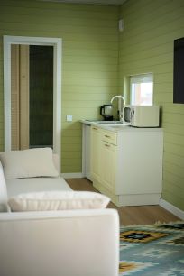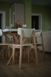 Наш самый семейный и самый праздничный домик. Тут классно собираться большой компанией: в гостиной - большой стол, много места, тёплая атмосфера, где хочется устраивать длинные ужины и встречи без спешки.