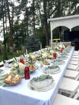 На территории: русская баня с кедровой бочкой, зона барбекю для приготовления шурпы, плова, ухи, казан 25л, ротанговые столы и стулья, мягкие пуфы, кресла, беседка с камином.