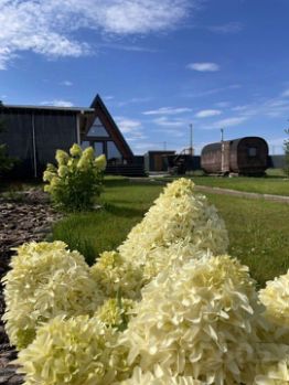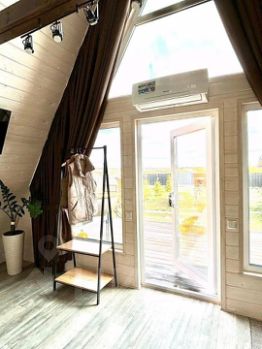 На территории: -2-х этажный треугольный домик с панорамным остеклением, везде для вашего удобства установлены теплые полы.