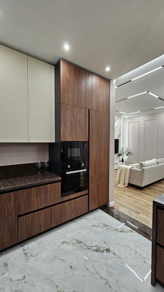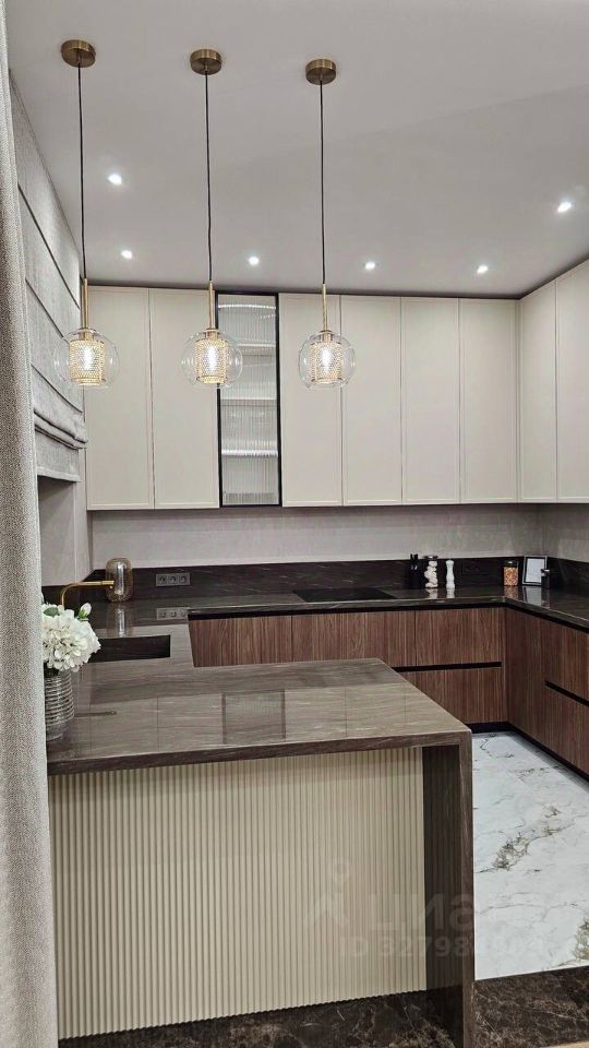 Дом обставлен дизайнерской мебелью, кухонный гарнитур со встроенной техникой