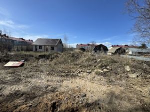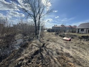 Земля находится на первой линии. Рядом многоэтажки, густо заселенный район в близи участка.