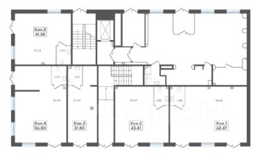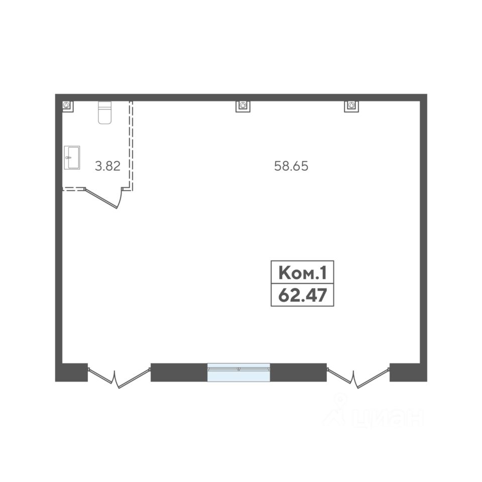 Площадь помещения: 62,41 кв.м., свободная планировка.