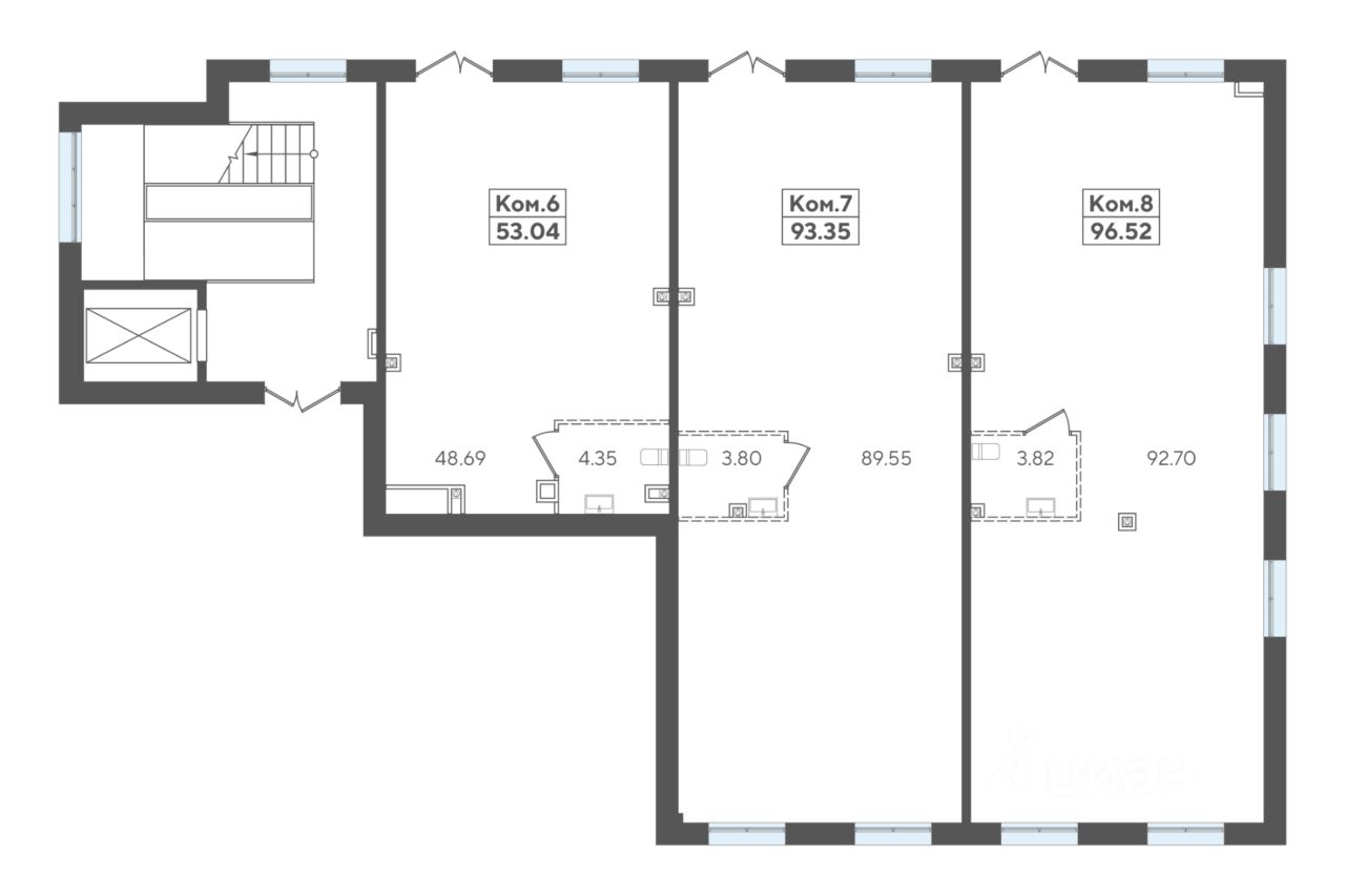 Площадь помещения: 93,21 кв.м., свободная планировка.