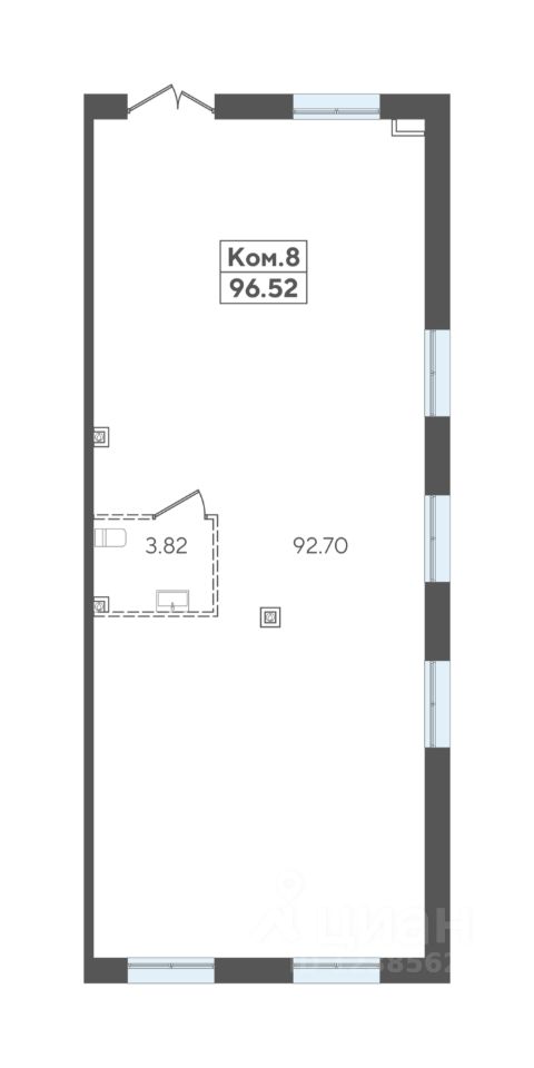 Площадь помещения: 96,35 кв.м., свободная планировка.