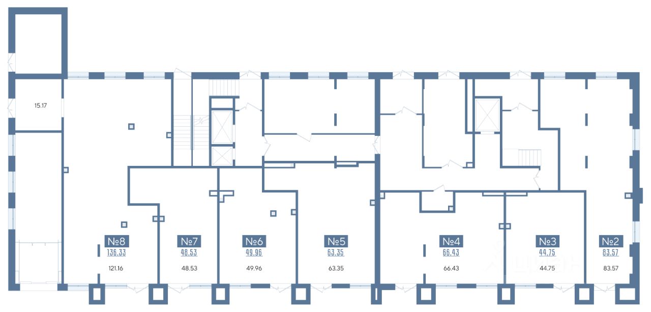 Площадь помещения: 66,43 кв.м., свободная планировка.