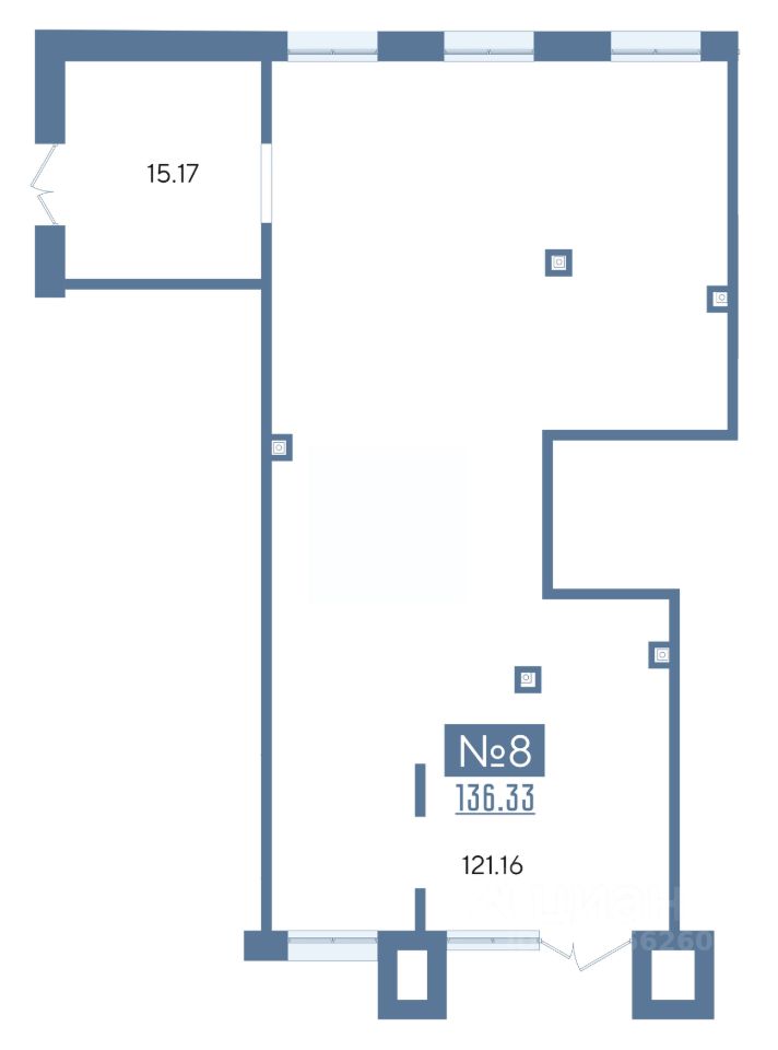 Площадь помещения: 136,33 кв.м., свободная планировка.