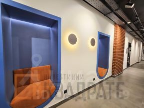 Лаундж зоны, места ожидания оформлены в стильном дизайнерском решении.