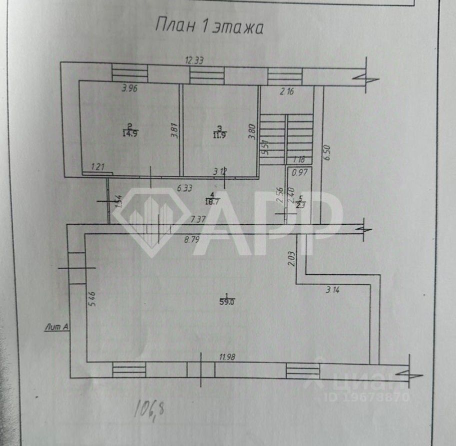 1 этаж жилого дома ( 1 этаж-106.8м2 + подвал 94.1м2).