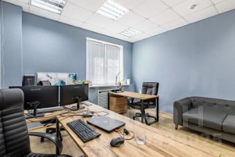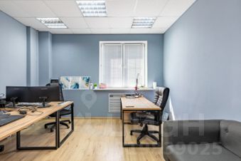 2 блок с отдельным входом - 2 кабинета(30м2 и 36,4 м2), где можно организовать рабочее пространство в стиле OPEN SPACE(выведены розетки под рабочие столы ), оборудованный туалет , просторный холл 12,9 м2, где можно организовать зону приема гостей, отдельная кухонная зона для сотрудников.
