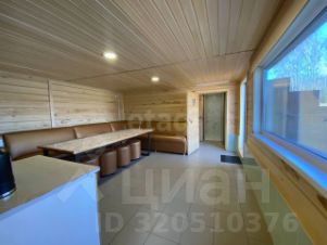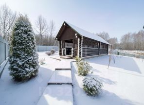 На одной - двухэтажный гостевой дом из сруба (108 кв.м), бильярдная, закрытая мангальная зона, баня с выходом в озеро, летняя беседка, батут и качели.