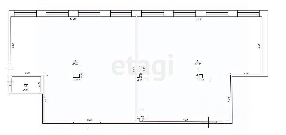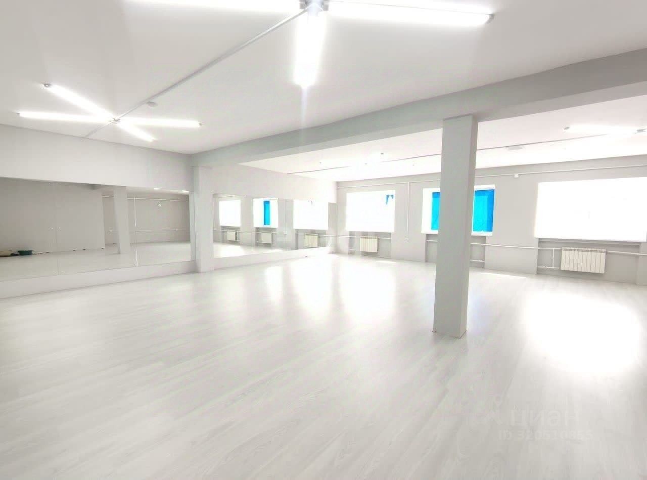 Помещение разделено на два больших зала. каждый по 105 кв.м.Сдано в аренду - один зал под фитнес, второй зал под школу танцев.