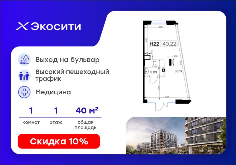 Продается помещение - 40,22 кв.м. в проекте Экосити.