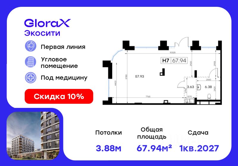 Продается помещение - 67,94 кв.м. в проекте GloraX Экосити.