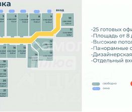 Функциональность и удобство: Отдельный вход, индивидуальные офисы (от 8 до 20 кв.м) с окном и мокрой точкой, современные противопожарные системы и круглосуточный доступ.