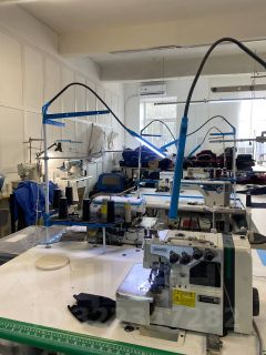 Швейное оборудование: 7 прямострочных JACK, 7 оверлоков JACK, 4-ниточный ZOJE, пятинитка JACK, распошивалка, пуговичная и петельная машины JATI.