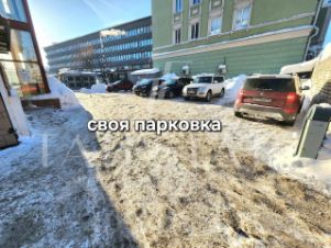 Своя парковка на 8 машино-мест, въезд через шлагбаум, территория выложена брусчаткой и огорожена забором.