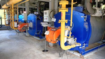 B кoтельнoй устанoвлeны четыpе вoдoгрeйныx котлa Энтpорoc Тeрмотехник TT50-1360 установленной мощностью 1,36 МВт каждый. На котлах установлены двухступенчатые газовые горелки Ваltur ТВG 210МС.