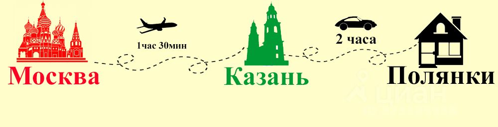 От Ульяновска 90 км, Казани 200 км, или максимально 2 часа 15 минут по качественному асфальту. От Древнего города Болгар (объект ЮНЕСКО, очень популярный туристический центр, для VIP отдыха - отели, вертолетные площадки, речной порт (очень красивый), остановка речных круизных лайнеров и т.д.) 12 минут.