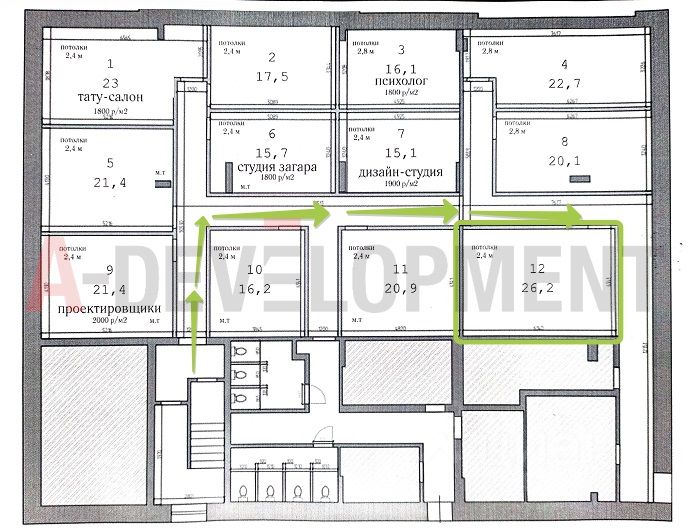 Также есть в наличии ещё 11 офисов от 15 до 23 кв.м, часть из которых сдана в аренду.