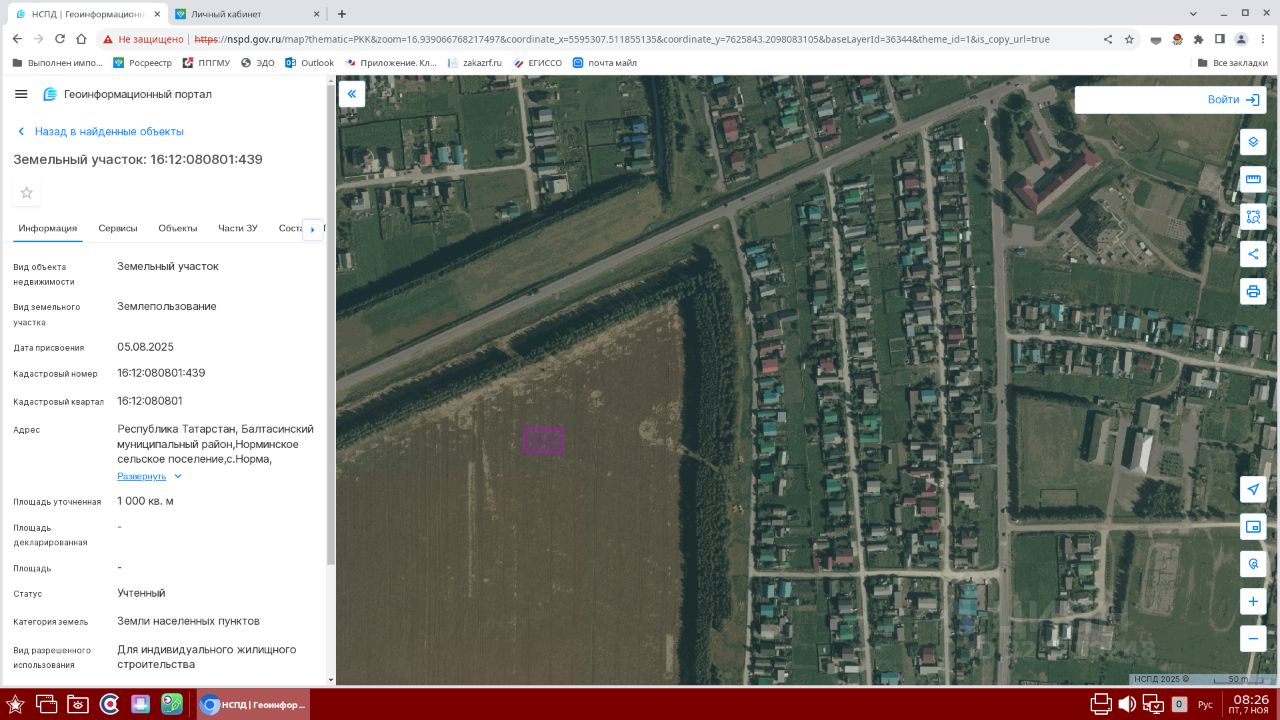 Категория земель: земли населенных пунктов, разрешенное использование: для индивидуального жилищного строительства, общая площадь 1000 кв.м, кадастровый номер 16:12:080801:439, расположенный по адресу: Республика Татарстан, Балтасинский муниципальный район, Норминское сельское поселение, с. Норма, ул. Равиля Фахрутдинова, д. 3.