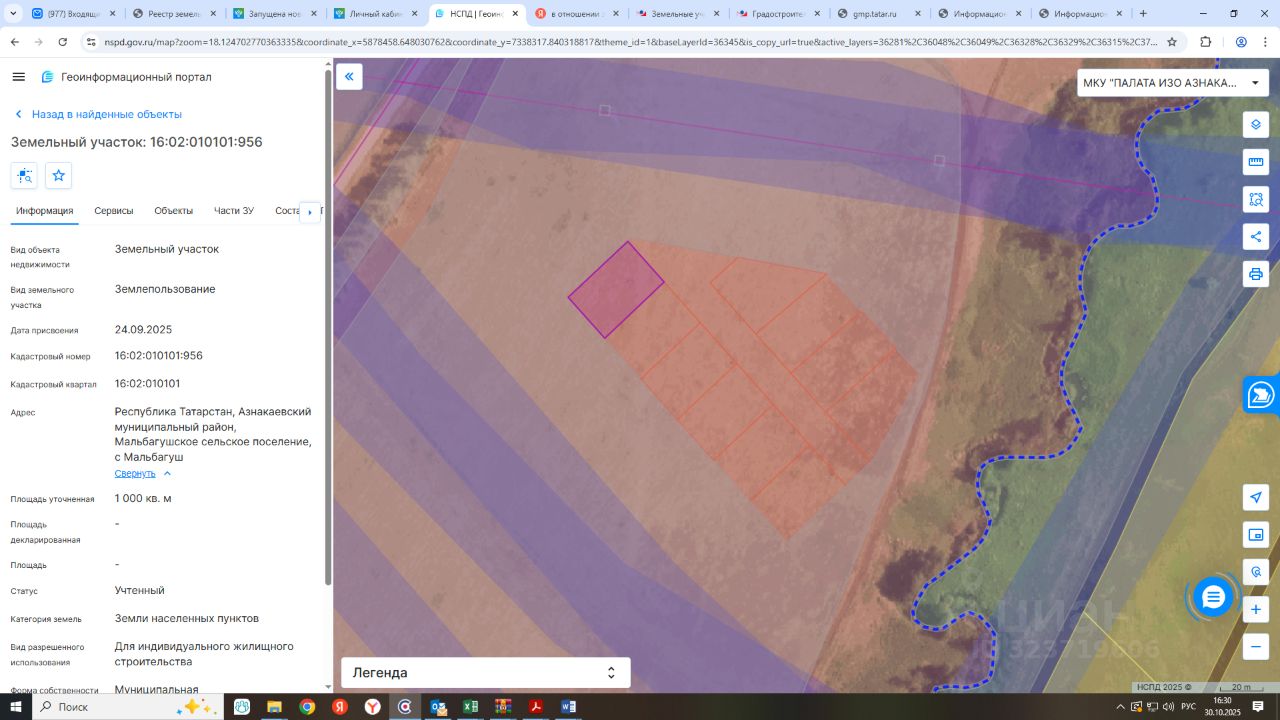 земельный участок, из состава земель населенных пунктов, для индивидуального жилищного строительства: - с кадастровым номером 16:02:010101:956, площадью 1000 (одна тысяча) кв.м.,