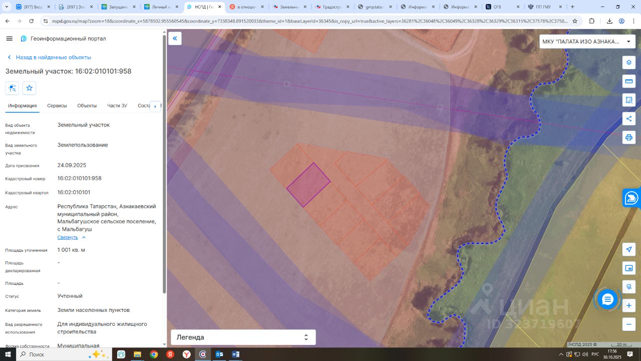 земельный участок, из состава земель населенных пунктов, для индивидуального жилищного строительства: - с кадастровым номером 16:02:010101:958, площадью 1001 (одна тысяча один) кв.м.,