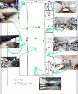Полы: Торг.зал - бетон, плитка (теплые полы); склад - бетонные плиты.