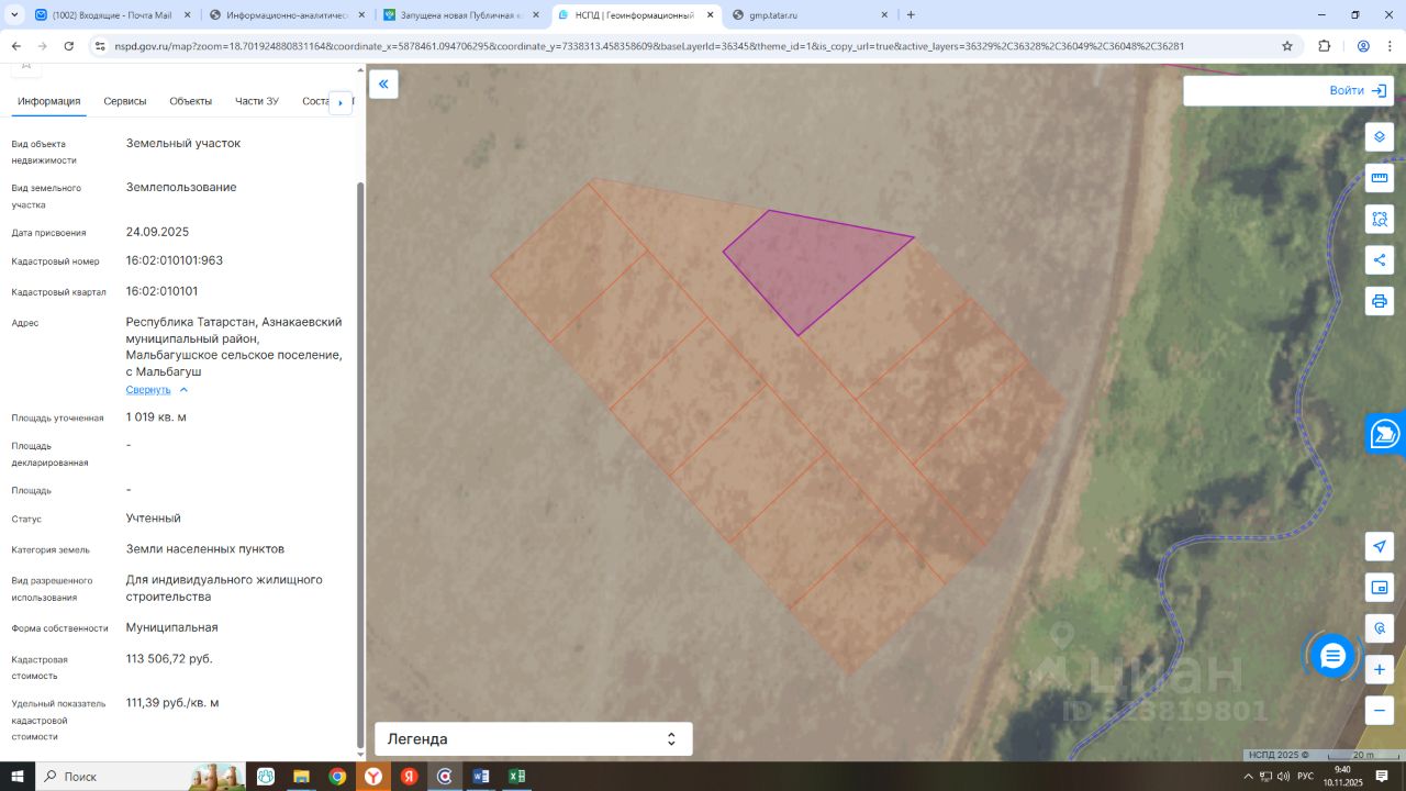 земельный участок, из состава земель населенных пунктов, для индивидуального жилищного строительства: - с кадастровым номером 16:02:010101:963, площадью 1019 (одна тысяча девятнадцать) кв.м.,