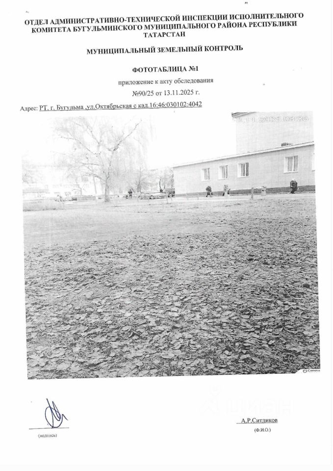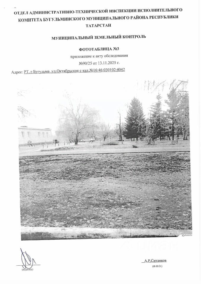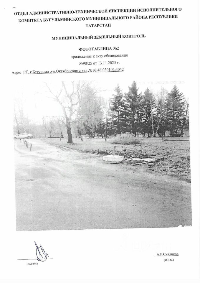 Земельный участок с кадастровым номером 16:46:030102:4042 площадь 1422 по адресу Российская Федерация, Республика Татарстан, Бугульминский муниципальный район, г. Бугульма, ул. Октябрьская