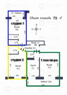 три изолированных номера: 2 студии и номер с изолированной кухней (1 комнатная квартира)