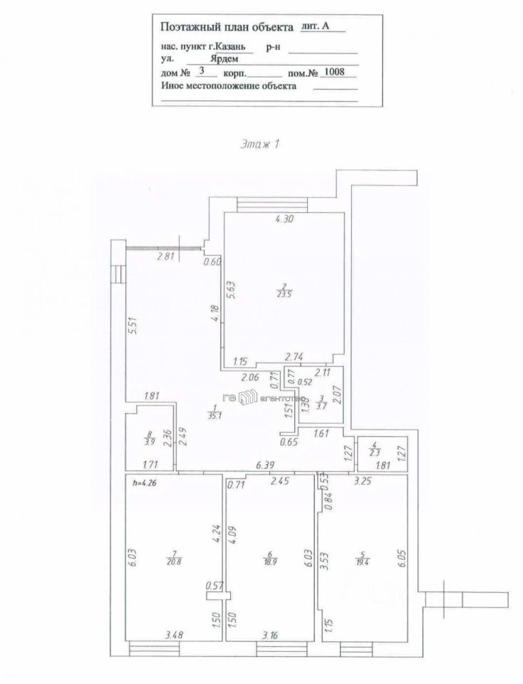 Помещение свободного назначения в новом ЖК "Алтын Яр" общей площадью 130 кв.м, расположенное в центре г. Казань по адресу: Ярдем, 3.