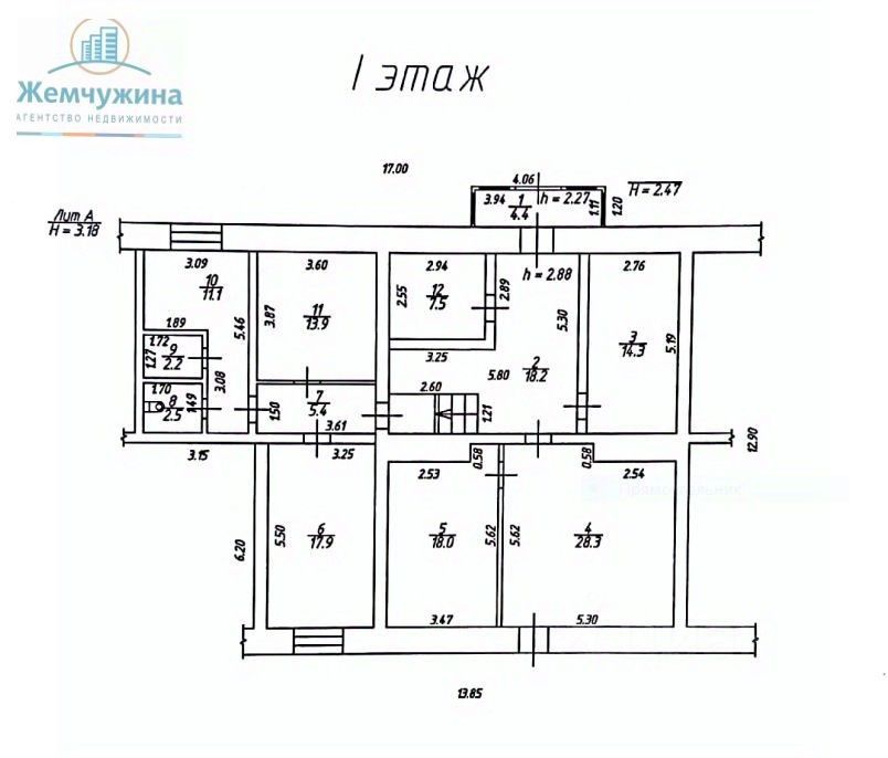 - Высота потолков на первом этаже 2,88 м, на втором этаже 3,76 м.