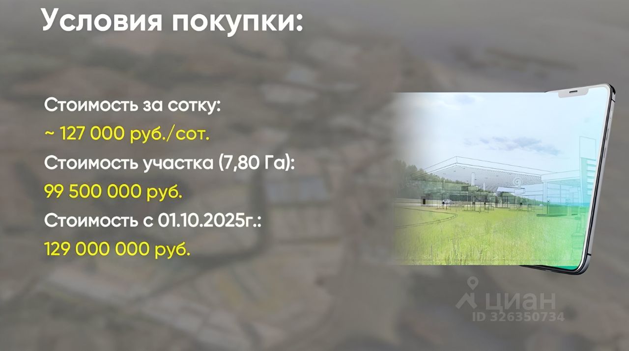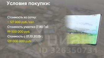 Стоимость участка (7,80 Га):