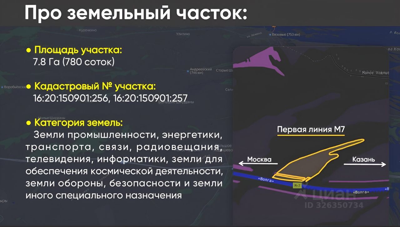 Продается земельный участок промышленного назначения на первой линия федеральной трассы М7!