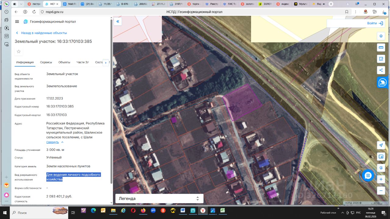 Лот 10. Земельный участок с кадастровым номером 16:33:170103:385 общей площадью 3000 кв.м., расположенный по адресу: Российская Федерация, Республика Татарстан, Пестречинский муниципальный район, Шалинское сельское поселение, с Шали. Категория Земли населенных пунктов/ разрешенное использование Для ведения личного подсобного хозяйства. Вид права собственность. Начальная цена 2763000,00рублей.