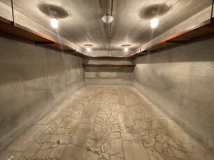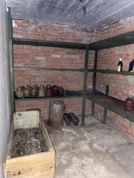 гараж на втором этаже с погребом на цокольном этаже. мраморные полы, полки