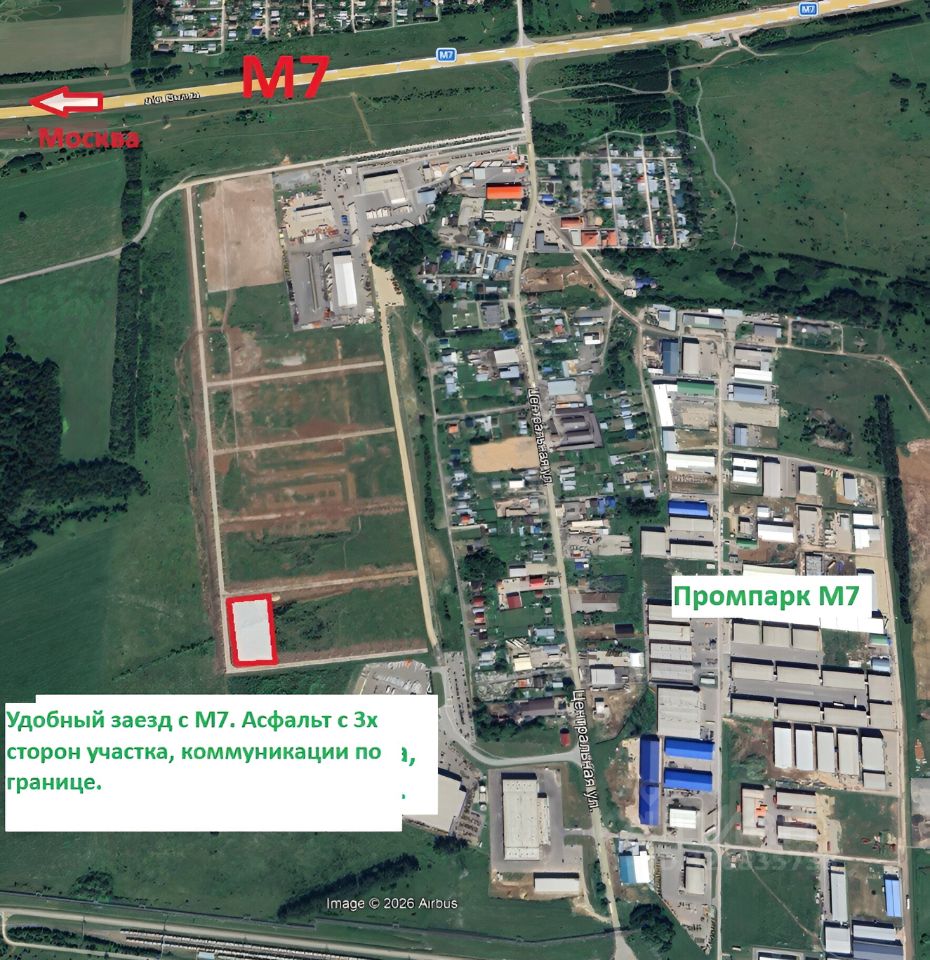 Продается земельный участок промышленного назначения вдоль федеральной трассы М7!