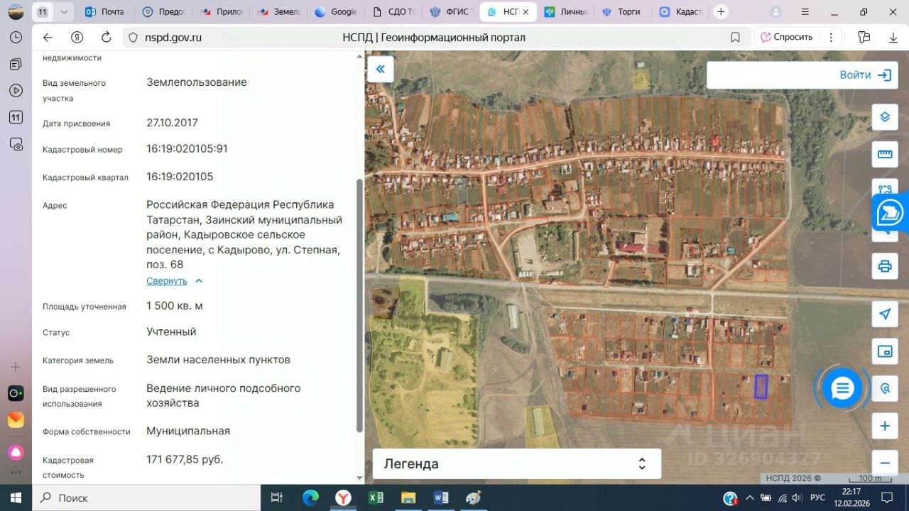 Земельный участок, категория земель: земли населенных пунктов, разрешенное использование: ведение личного подсобного хозяйства, общая площадь 1500 кв.м., кадастровый номер 16:19:020105:91, расположенный по адресу: Российская Федерация, Республика Татарстан, Заинский муниципальный район, Кадыровское сельское поселение, с. Кадырово, ул. Степная, поз. 68.