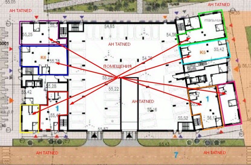 1 этаж ( помещения смотрят на парковку Мегастроя)