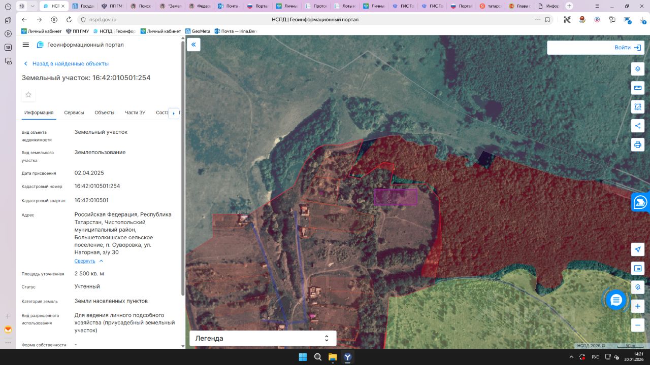 Земельный участок с кадастровым номером 16:42:010501:254 площадь 2500 по адресу Российская Федерация, Республика Татарстан, Чистопольский муниципальный район, Большетолкишское сельское поселение, п. Суворовка, ул. Нагорная, з/у 30