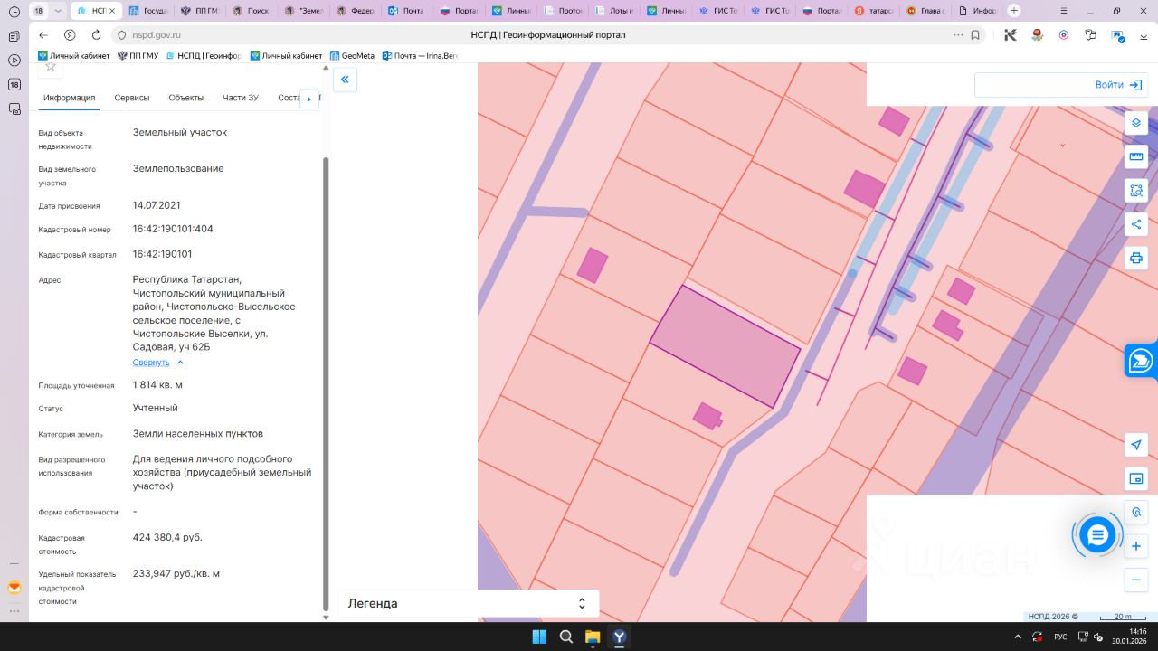 Земельный участок с кадастровым номером 16:42:190101:404 площадь 1814 по адресу Республика Татарстан, Чистопольский муниципальный район, Чистопольско-Высельское сельское поселение, с Чистопольские Выселки, ул. Садовая, уч 62Б