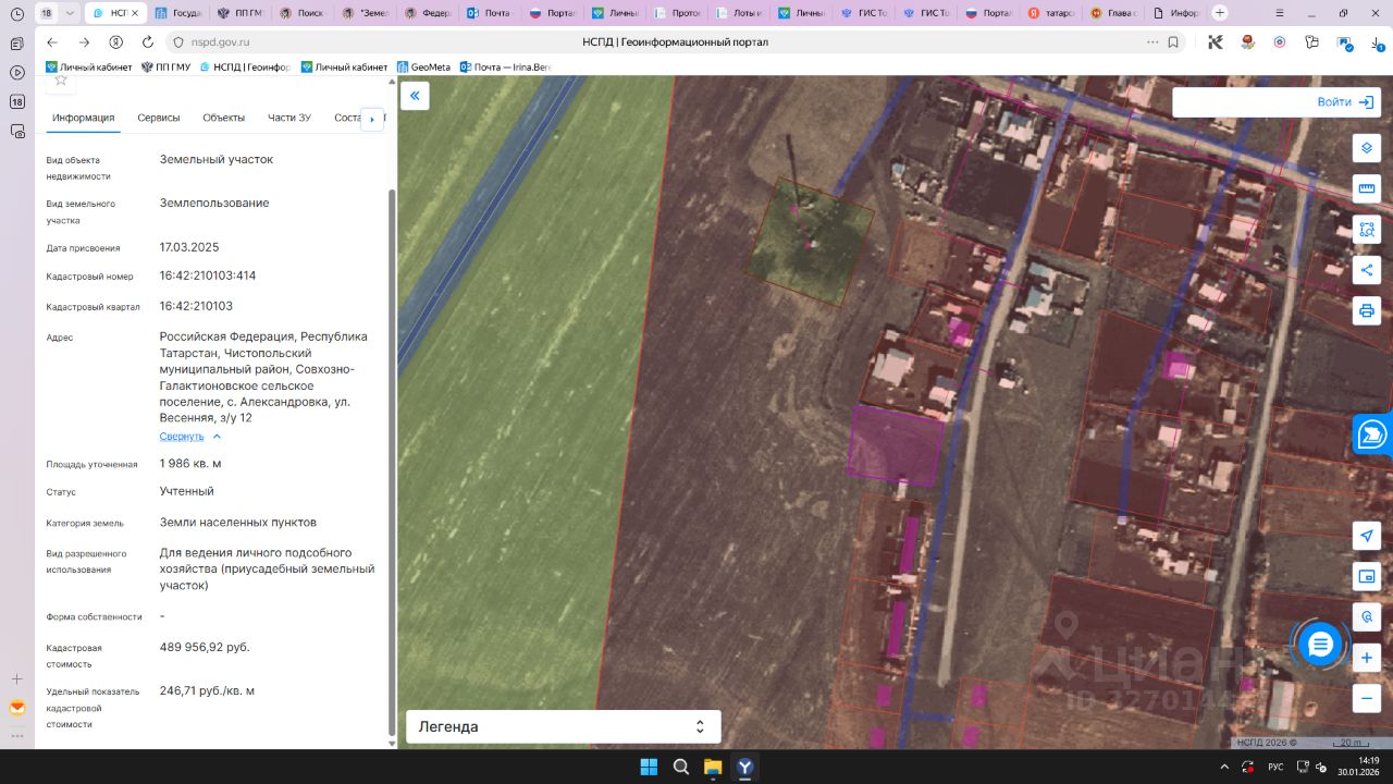 Земельный участок с кадастровым номером 16:42:210103:414 площадь 1986 по адресу Российская Федерация, Республика Татарстан, Чистопольский муниципальный район, Совхозно-Галактионовское сельское поселение, с. Александровка, ул. Весенняя, з/у 12