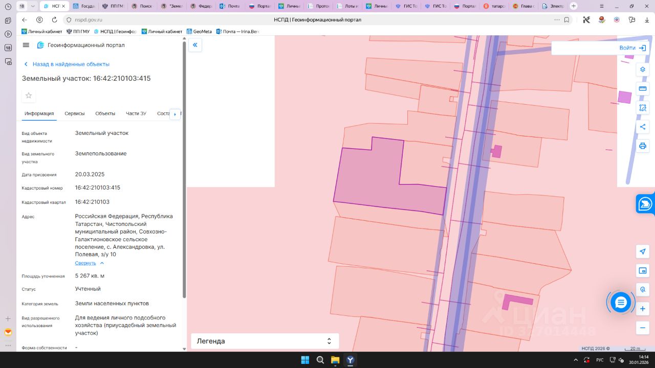 Земельный участок с кадастровым номером 16:42:210103:415 площадь 5267 по адресу Российская Федерация, Республика Татарстан, Чистопольский муниципальный район, Совхозно-Галактионовское сельское поселение, с. Александровка, ул. Полевая, з/у 10