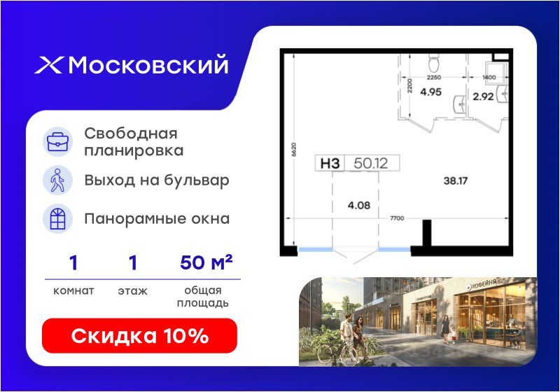 Коммерческое помещение 50.12 м² в проекте Московский от GloraX