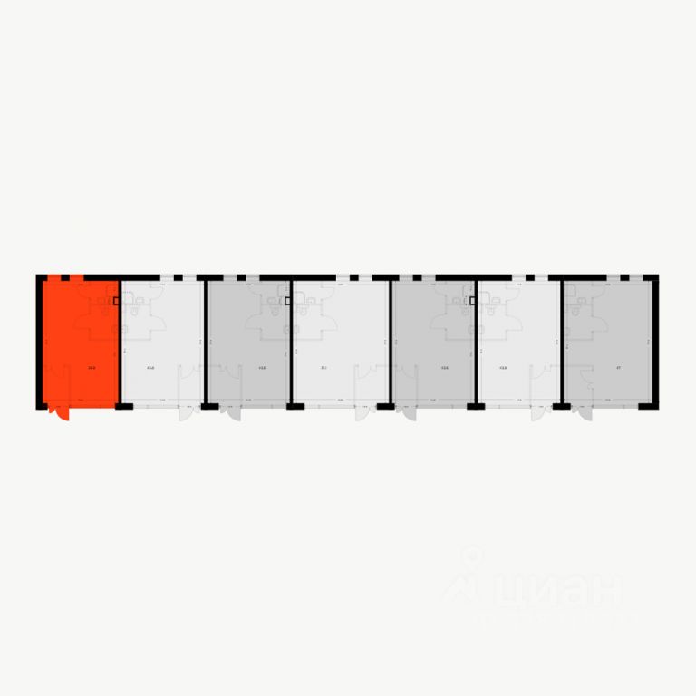 - Открытая планировка, возможно объединить несколько помещений