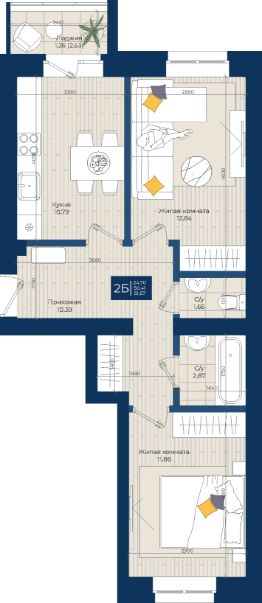 Жилой комплекс "Достояние", Квартира 42 общей площадью 52,1 м2 на 5 этаже, улица Дорожная, дом 25.
