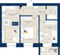 Жилой комплекс "Достояние", Квартира 36 общей площадью 54 м2 на 4 этаже, улица Дорожная, дом 35.