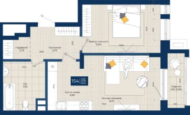 Жилой комплекс "Максат", Квартира 154 общей площадью 59,94 м2 на 2 этаже.