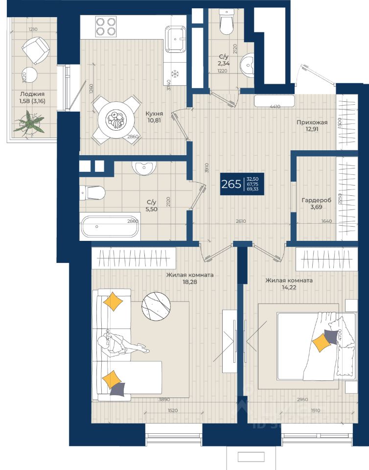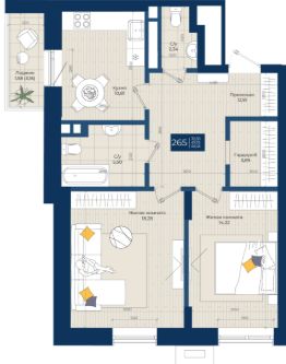 Жилой комплекс "Максат", Квартира 265 общей площадью 69,33 м2 на 3 этаже.